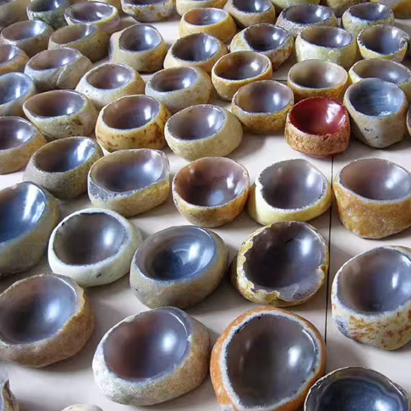 Natural Brazilian Agate Bowl, Raw Stone Carving, Crystal Bowl, Ashtray, Pen Washer, Inkstone, Tea Set, Home Decoration Ornament