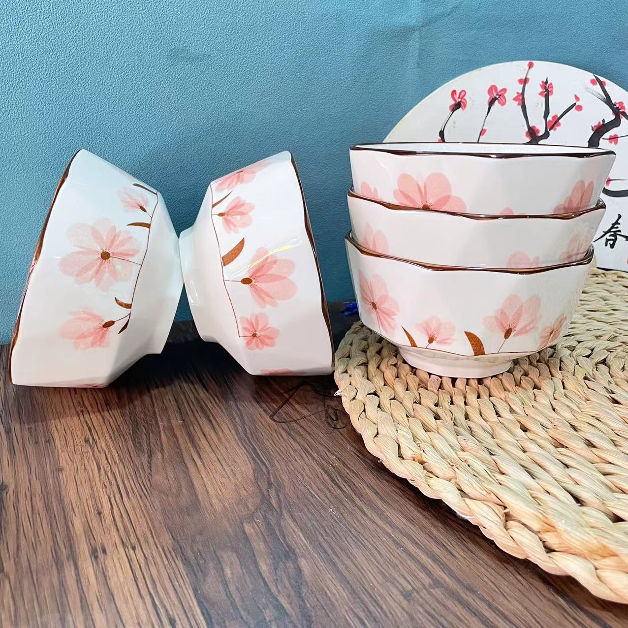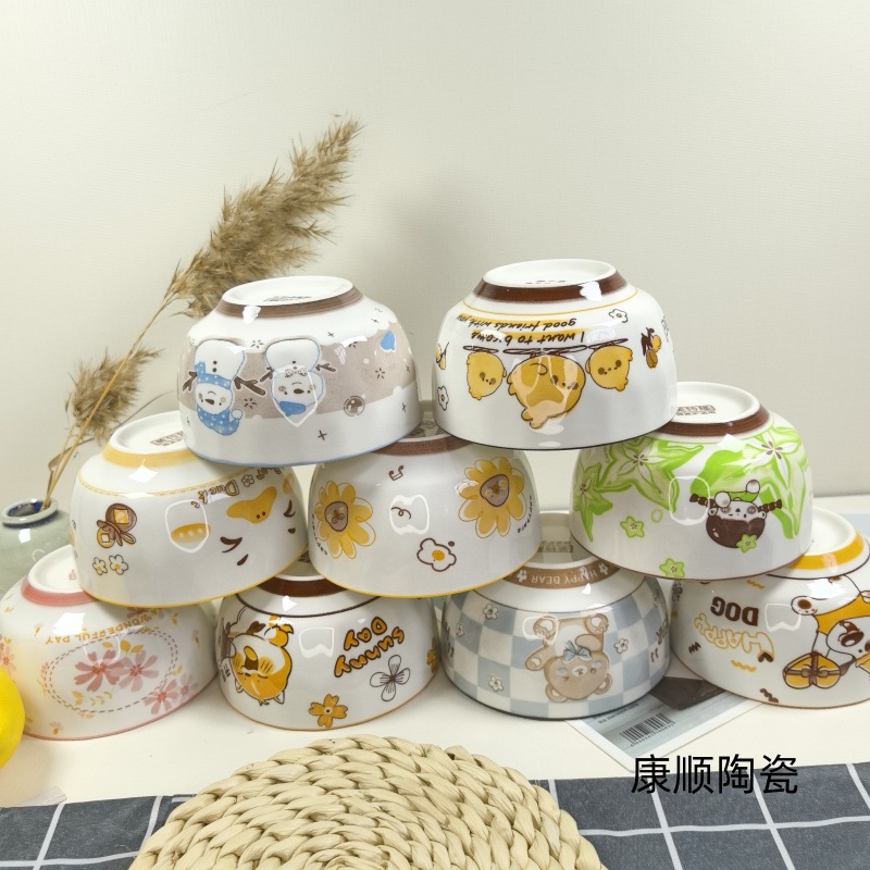 5 Inch Ceramic Bowl Creative Diamond Cut-out Printed Porcelain Bowl New Underglaze Color Rice Bowl Household Anti-scalding Tableware