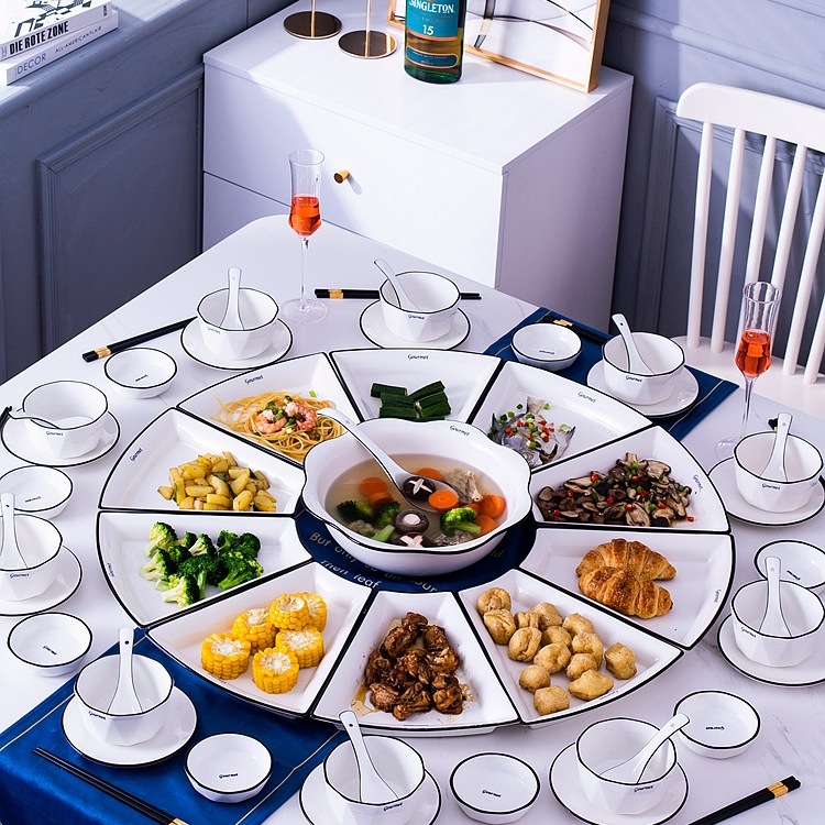 New Chinese New Year Round Table Fan-Shaped Plate Dish Plate Household Internet Celebrity Ceramic Reunion Platter Tableware Combination Dish Set