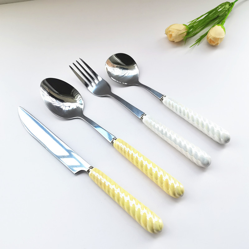 New Colorful Diamond Ceramic Handle Knife, Fork, and Spoon Set Three-Piece Steak Knife Dessert Fruit Fork Spoon Tableware