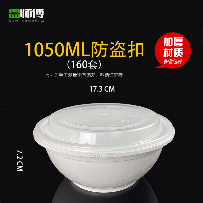 Box Master Football Bowl Diamond Bowl Spherical Japanese Ramen Bowl Spherical Fast Food Box Plastic Takeout Box 1250 Locking