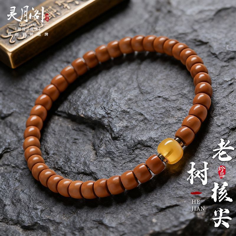 Original Olive Stone Tip Bracelet, Genuine Beeswax, Straight-Cut Buddha Beads, High-End Bracelet for Men