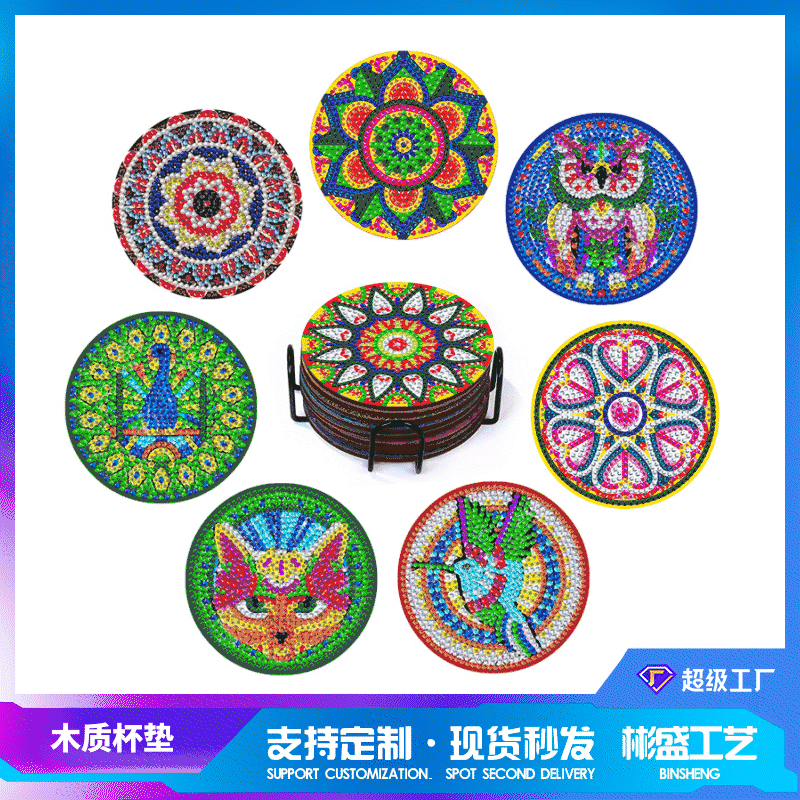 Diamond Painting Peripheral DIY Dot Diamond Placemat Acrylic Four-Piece Set Creative Mandala Restaurant Plate Handmade Decoration