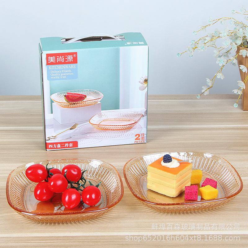 Square Glass Plate Two-Piece Set Light Luxury Home Snack Plate Kitchen Meal Plate Set Jewelry Sales Gift Wholesale