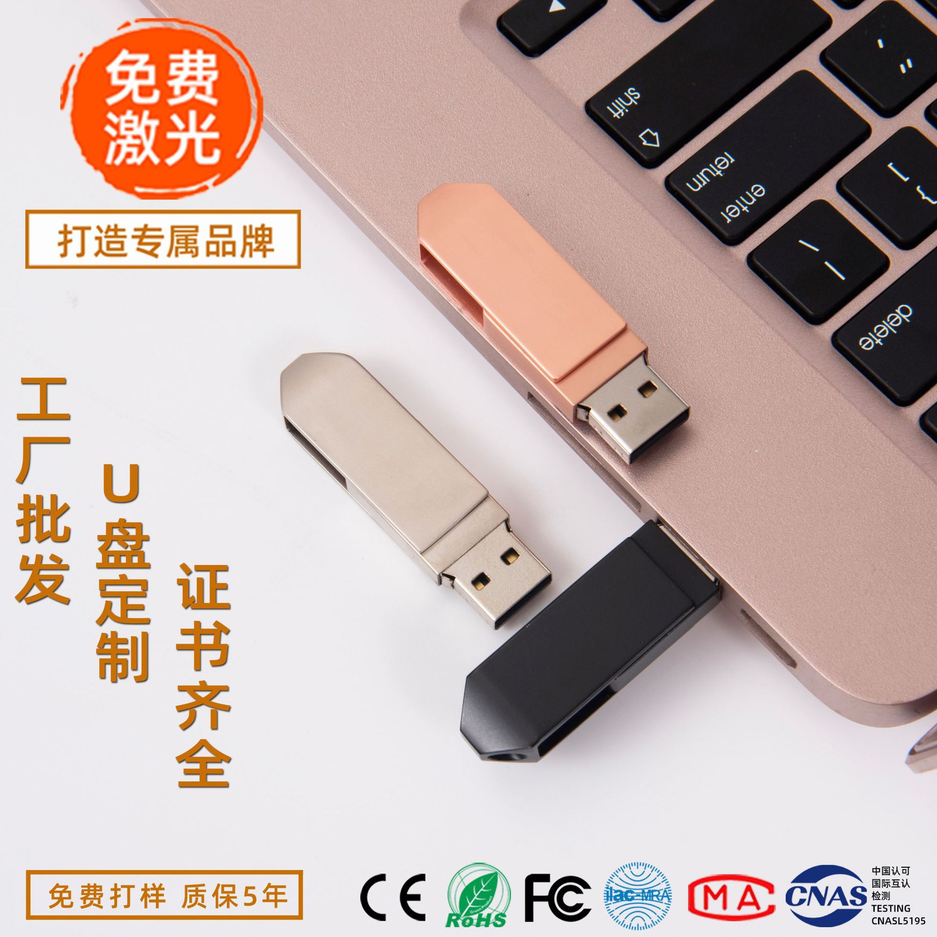 Factory Wholesale USB Flash Drive 64g Metal Rotating USB Flash Drive with Engraved Logo Computer USB Notebook Gift Set Customization
