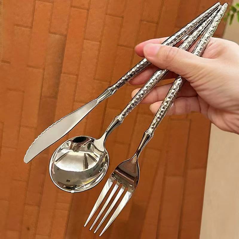 304 Stainless Steel Ballet Classy Western Tableware Spoon Knife and Fork Cut Steak European Diamond Pattern Hammer Pattern Solid Ins