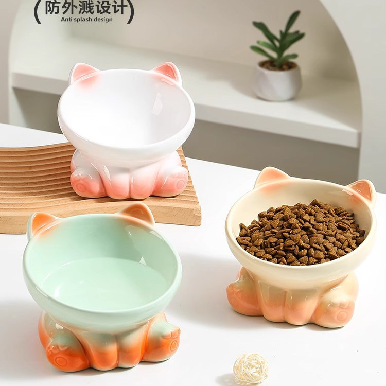 Gradient Cat Bowl Ceramic Cervical Spine Protection Cat Bowl Cat Food Bowl Water Bowl Cat Bowl Dog Bowl Slanted Mouth Pet Bowl Anti-Wang