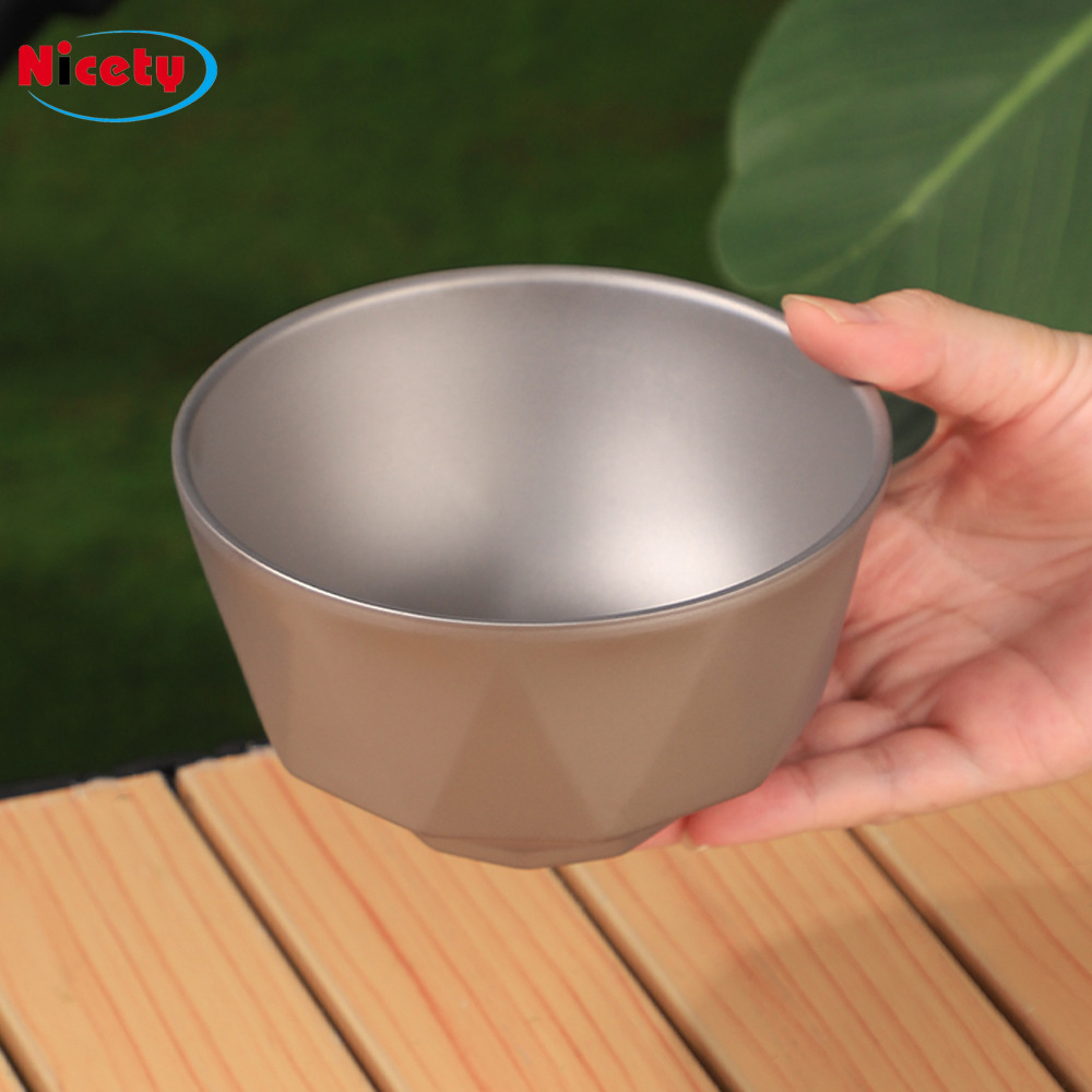 Outdoor Cookware Pure Titanium Bowl Camping Tableware Eating Bowl Instant Noodle Bowl Portable Picnic Double-Layer Anti-Scald Diamond Bowl Soup Bowl