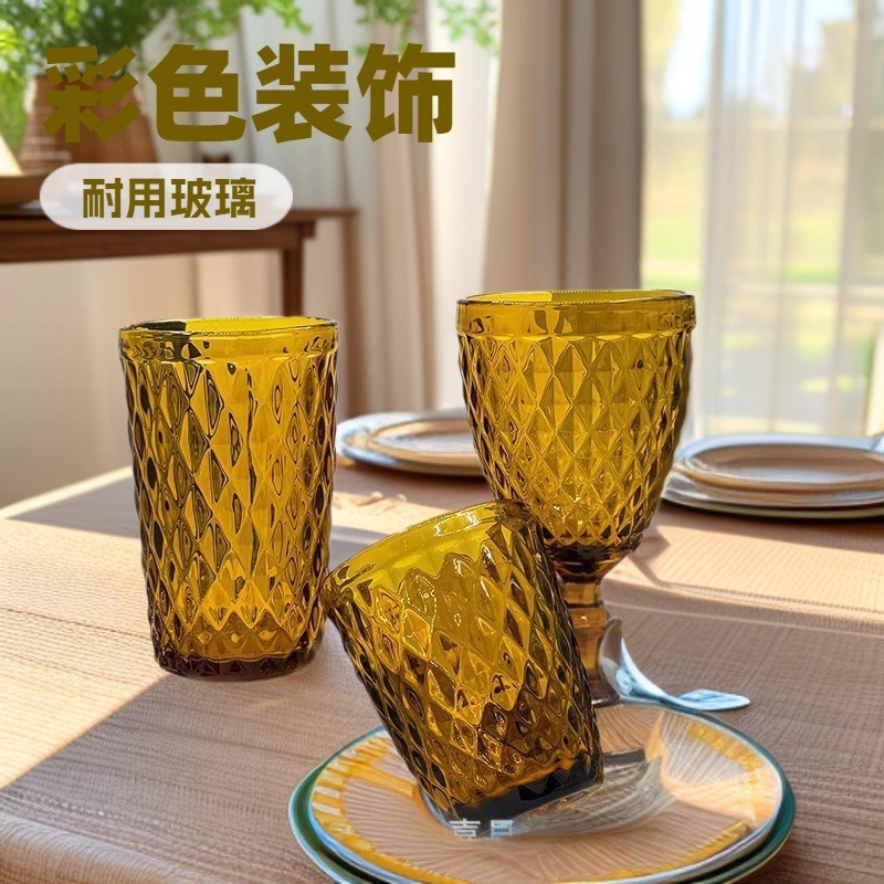 Factory Direct Sales Wholesale European-Style Amber Natural Color Glass Cup Wine Glass Champagne Glass Ice Cream Bowl Beverage Diamond