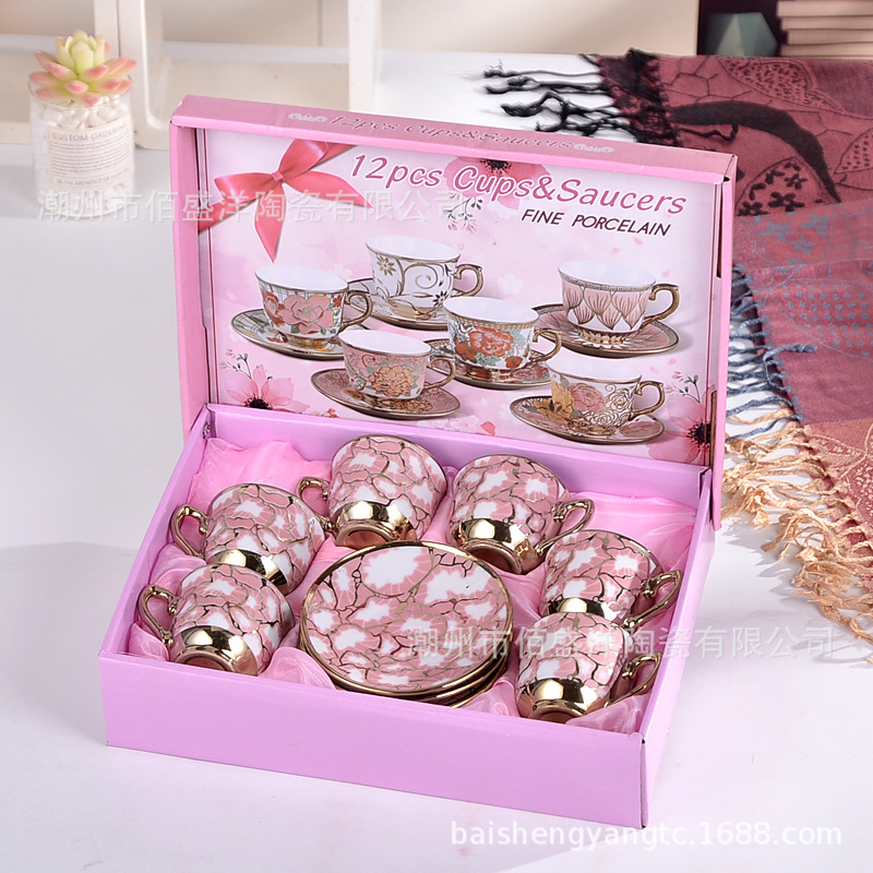 Large Stone Pattern Ceramic Cup European Style Gold-Plated Coffee Cup and Saucer Set Afternoon Tea Cup Opening Jewelry Gift Printed Le18