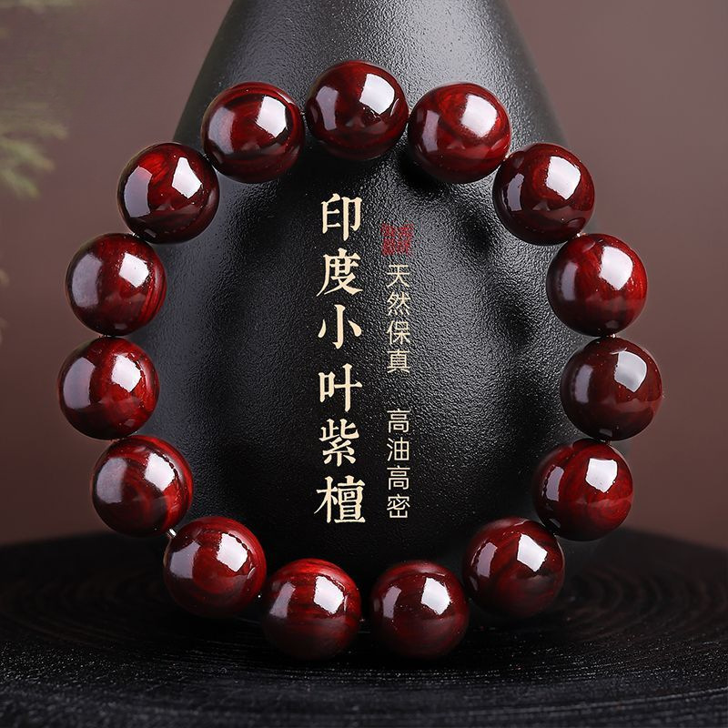 Authentic Indian Small-Leaf Red Sandalwood Bracelet for Men, Large-Sized Buddha Beads Wooden Bracelet, High-End Red Sandalwood