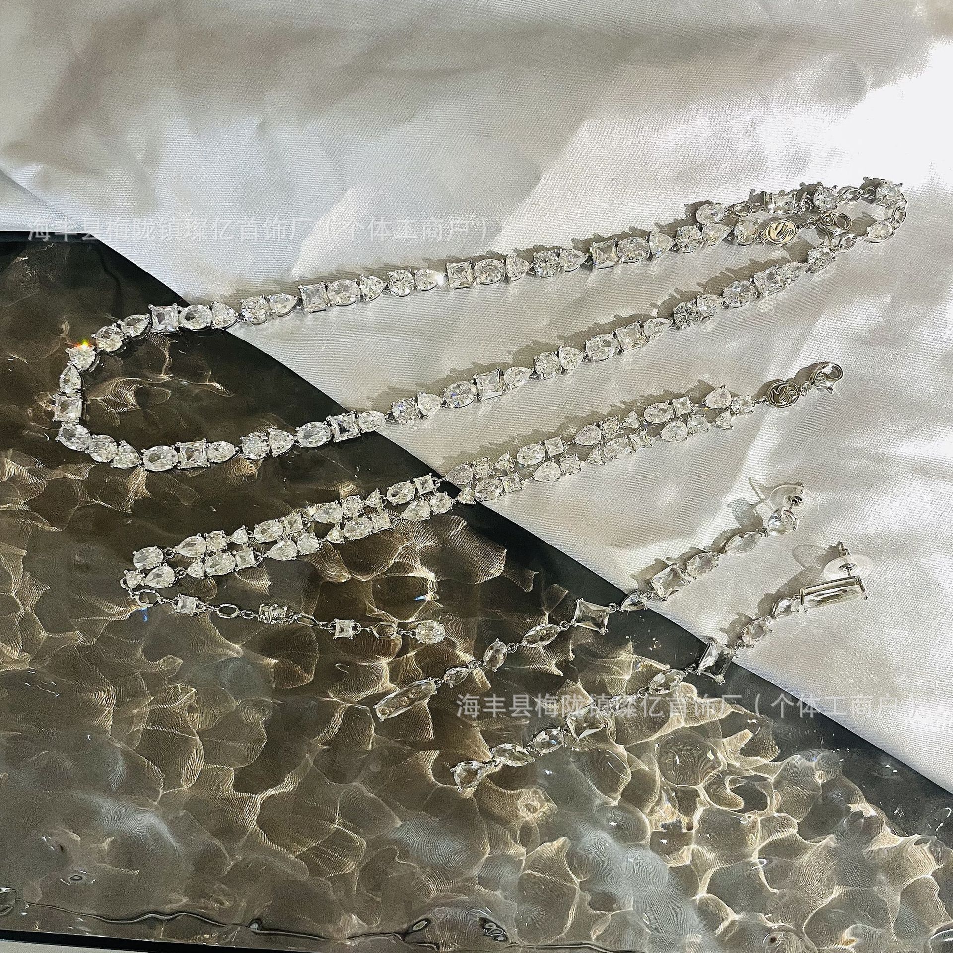 Cross-border bridal jewelry fashion necklace earrings two-piece set of water drop diamond ornaments women's chain simple super flash light luxury wholesale