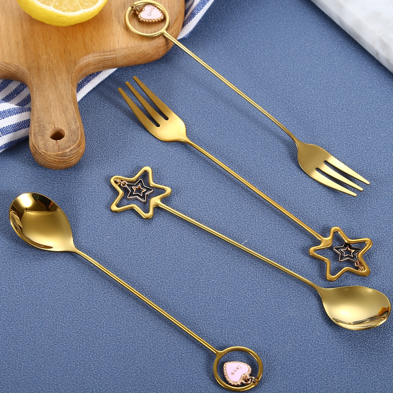 304 Stainless Steel Pendant Spoon Creative Cartoon Cute Stirring Coffee Dessert Mug Small Spoon Gift Box Set