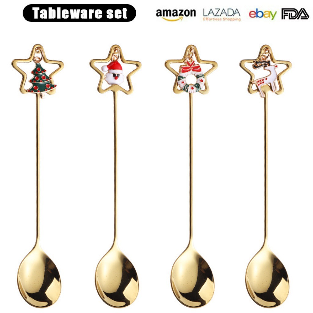 Cross-Border Stainless Steel Spoon Christmas Set 430 Pendant Spoon Coffee Stirring Spoon Christmas Gift Box Creative Gift