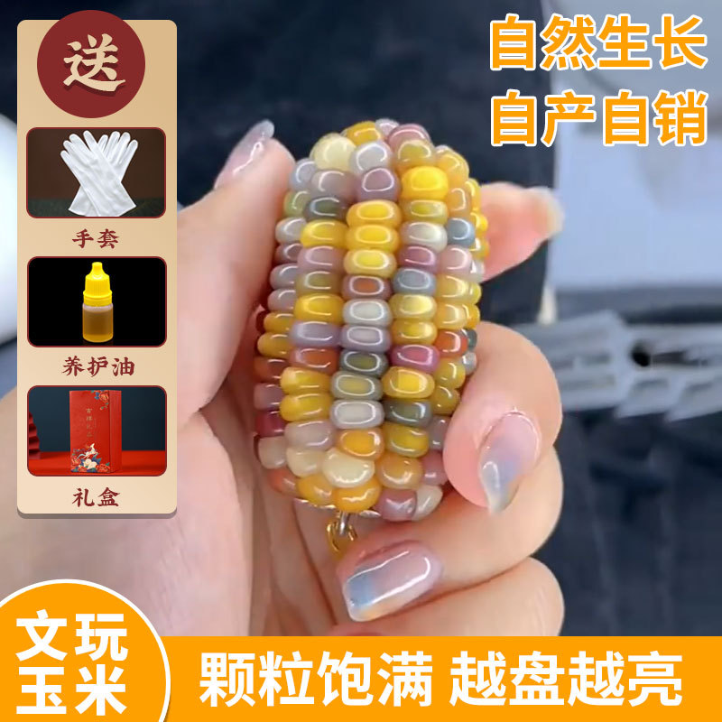 Corn-Themed Toy Corn Handle Pieces with Colorful Small Gemstones, Corn Blind Box Set of Three, Mini Wool Material for Playing