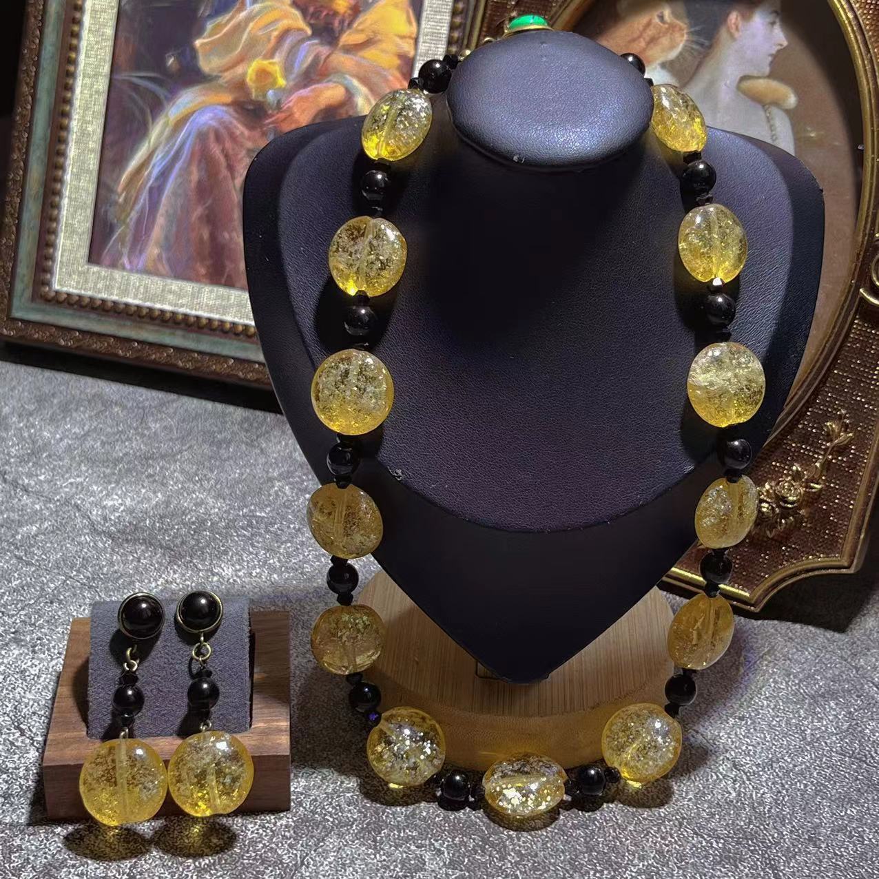 Middle Ancient vintage Vintage Return Ancient Method Flat Glaze Crystal Handmade Beaded Long Earrings Necklace suit