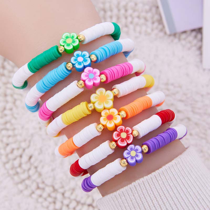 Amazon Best Selling Bohemian Layered Soft Clay Bracelet Set Sweet and Cute Colorful Flower Stretch Bracelet for Women