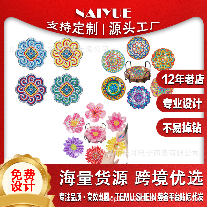 New Diamond Painting Coaster with Stand DIY Handmade Flower Diamond Painting Tea Coaster Kit