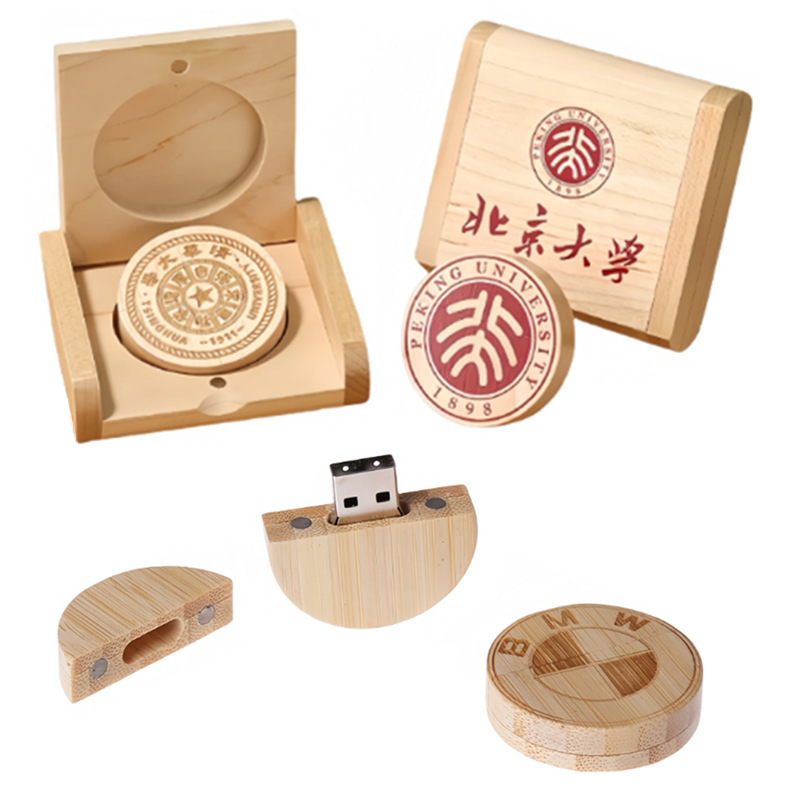 Wooden School Badge USB Flash Drive Wholesale School Company Creative Badge Graduation Gift Large Capacity USB Flash Drive Wooden USB Flash Drive Customization