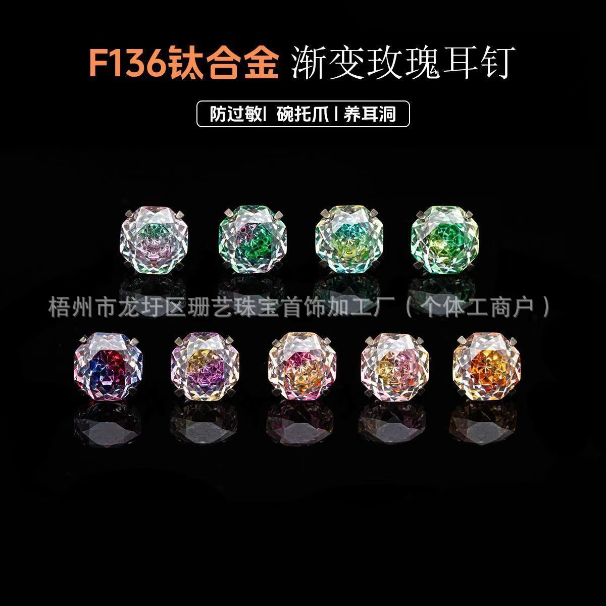 F136 Titanium Eight-Sided Rose Cut Gradient Zircon Ear Bone Nail G23 Titanium Alloy Bowl Bottom Earrings Pierced Earrings