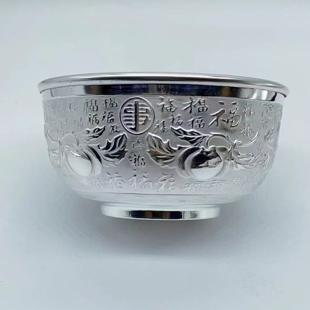 Silver Bowl Sterling Silver s999 Light Luxury Niche silver Double-layer Embossed Bowl for Baby Year-old Year-old Gift 2025
