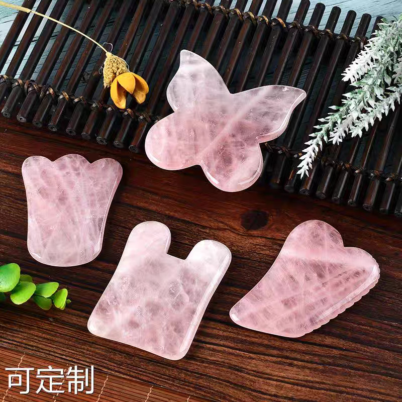 Cross-Border Supply Fishtail-Shaped Gua Sha Beauty Board Knife-Shaped Muscle Pulling Stick Natural Pink Crystal Jade Massage Stick Beauty in Stock