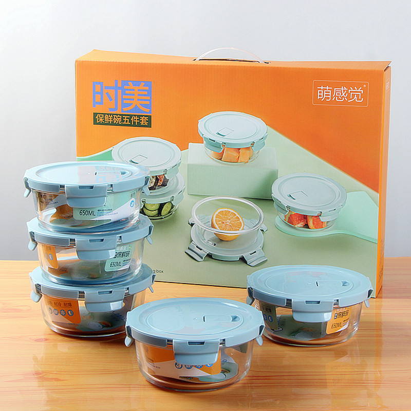 Heat-Resistant Glass Food Storage Bowl Five-Piece Gift Set Refrigerator Storage Box Insurance Bank Jewelry Holiday Gift