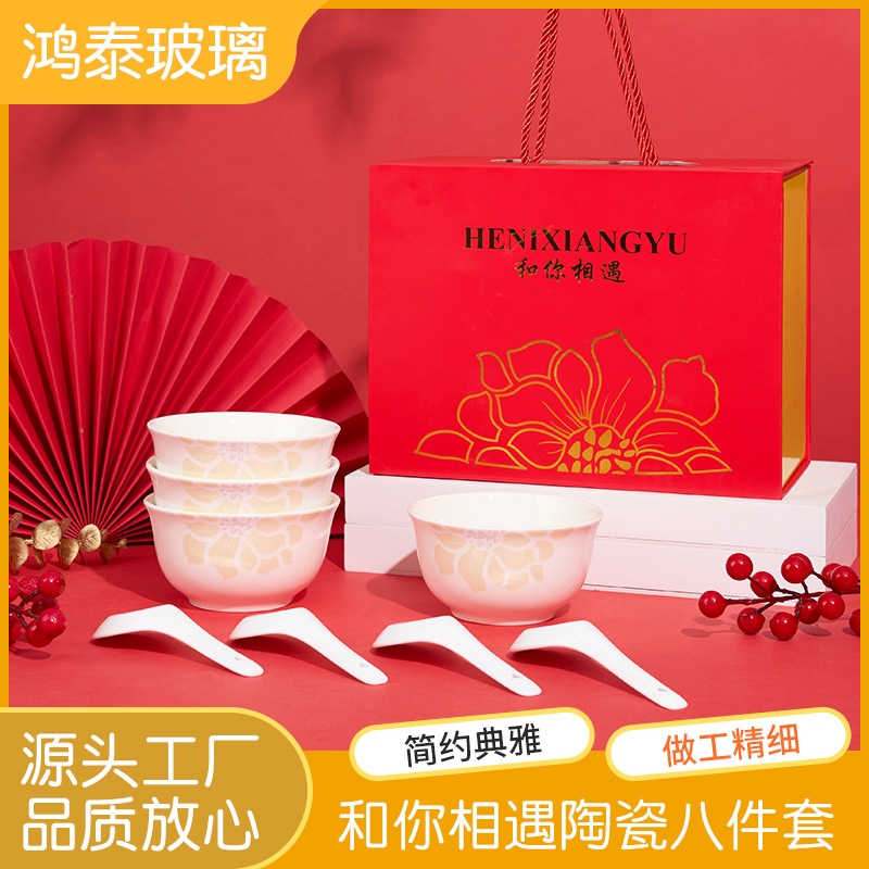 Youbaite Meets You Red Gift Box Household Ceramic Set Bowl Gift Wholesale Opening Jewelry Wedding Tableware
