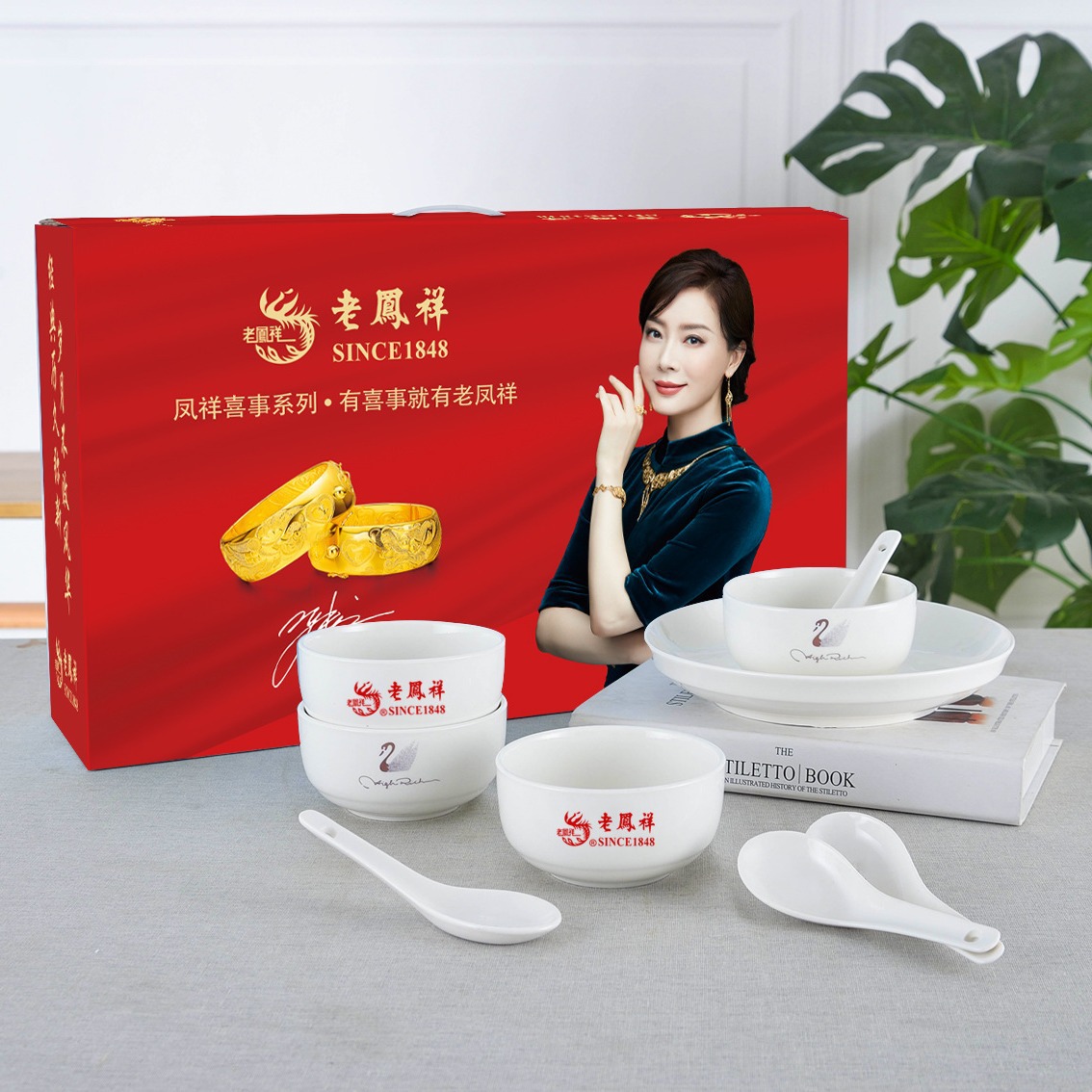 Qian Fang Rich Ceramic Tableware Bowl and Plate Set Real Estate Jewelry Event Gift Gift Box Wholesale