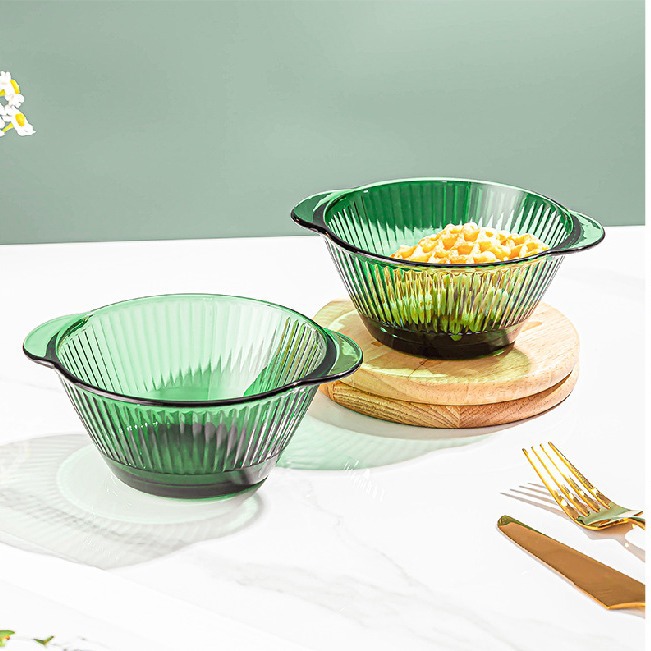 Leweishi Dark Green Double-Eared Bowl Two-Piece Set Glass Tableware Set Souvenir Jewelry Event Gift Wholesale