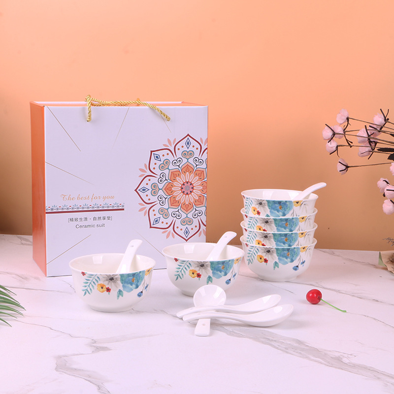 Ceramic Bowl Spoon Chopsticks Plate and Dish Combination Tableware Gift Set Jewelry Activity Company Annual Meeting Staff Welfare Gift
