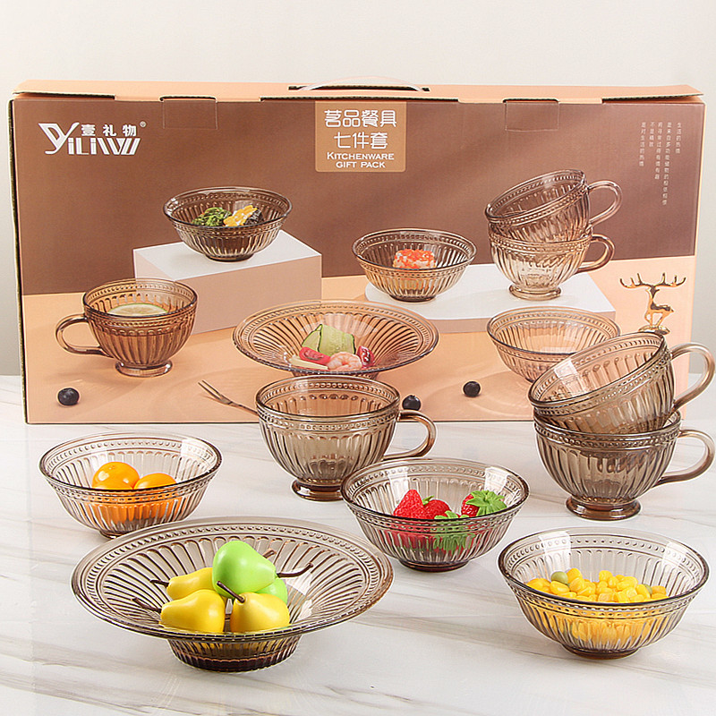 European-Style Glass Tableware Seven-Piece Set, Breakfast Cup, Salad Bowl Set, Bank Jewelry Festival Opening Gift