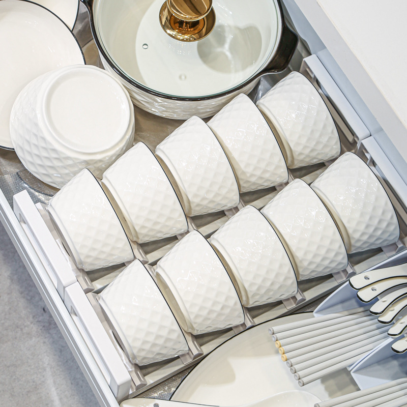 Simple Household Ceramic Tableware Set Chinese Diamond Phnom Penh Dishes and Dishes Microwavable Dishes and Dishes Combination Gifts for Sale
