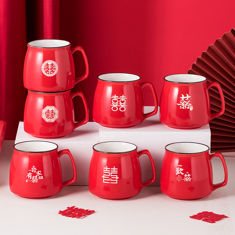 Festive Ceramic Cup Wedding Set, a Pair of Wedding Cups, Red Festive Wedding Bowls, Dowry Cups, Wedding Jewelry Gifts