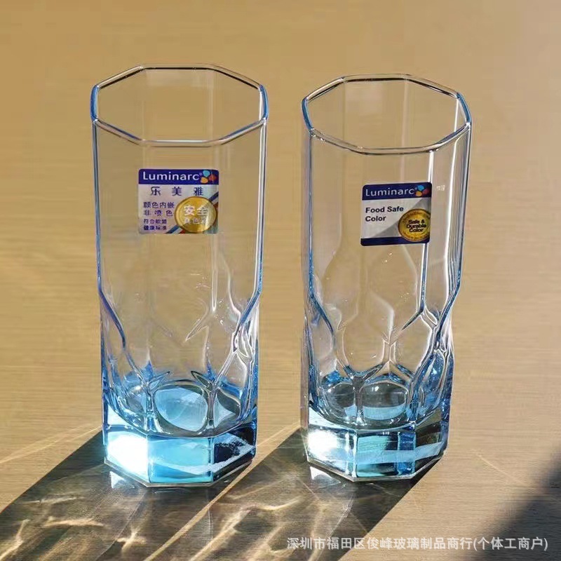 Lemeiya Glass Ice Blue Octagonal Diamond Glass Water Cup Tea Cup Colorful Milk Cup Breakfast Cup Popular Creative
