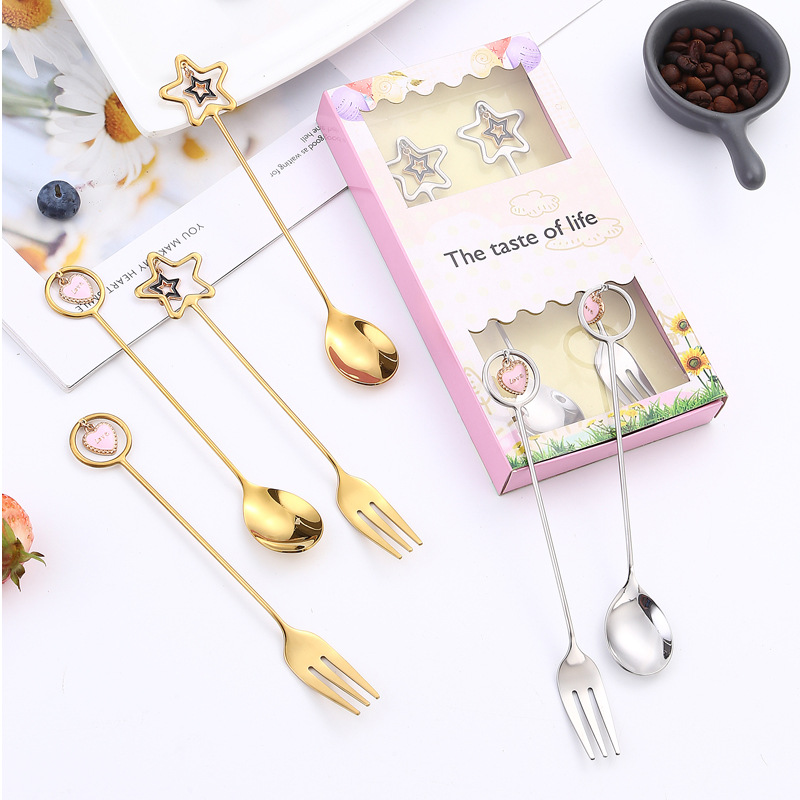 304 Cute Japanese Pendant Fork Spoon Set Creative Gift Accompanying Gift Star Love Dessert Tableware Gift Box
