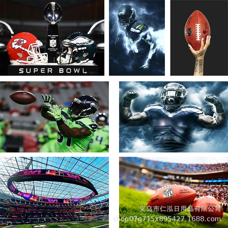 Amazon 5DDIY Diamond Painting Super Bowl Rugby Round Diamond Cross-stitch Decorative Painting Cross-border Factory Wholesale