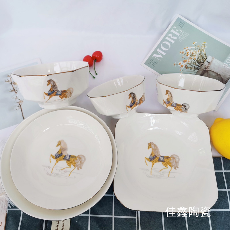 Wholesale ins Nordic vintage ceramic tableware irregular light luxury ceramic bowl plate Diamond Bowl plate