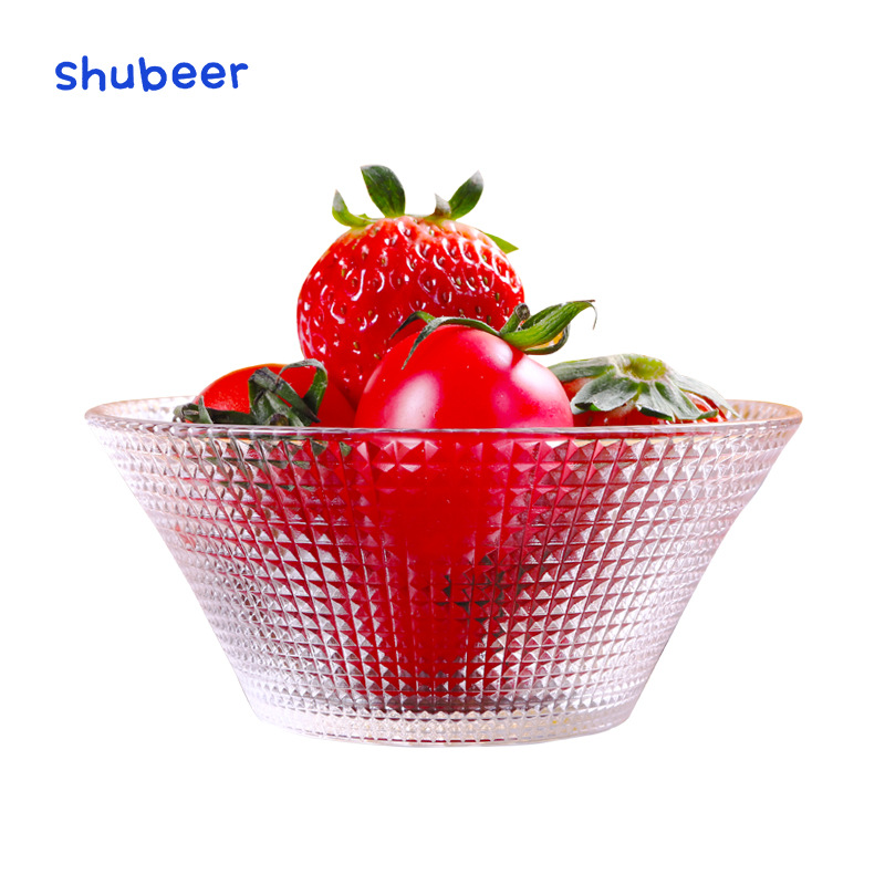Transparent Glass Salah Bowl Household Heat-resistant Glass Bowl Large Diamond Pattern Glass Bowl Internet Red Bowl