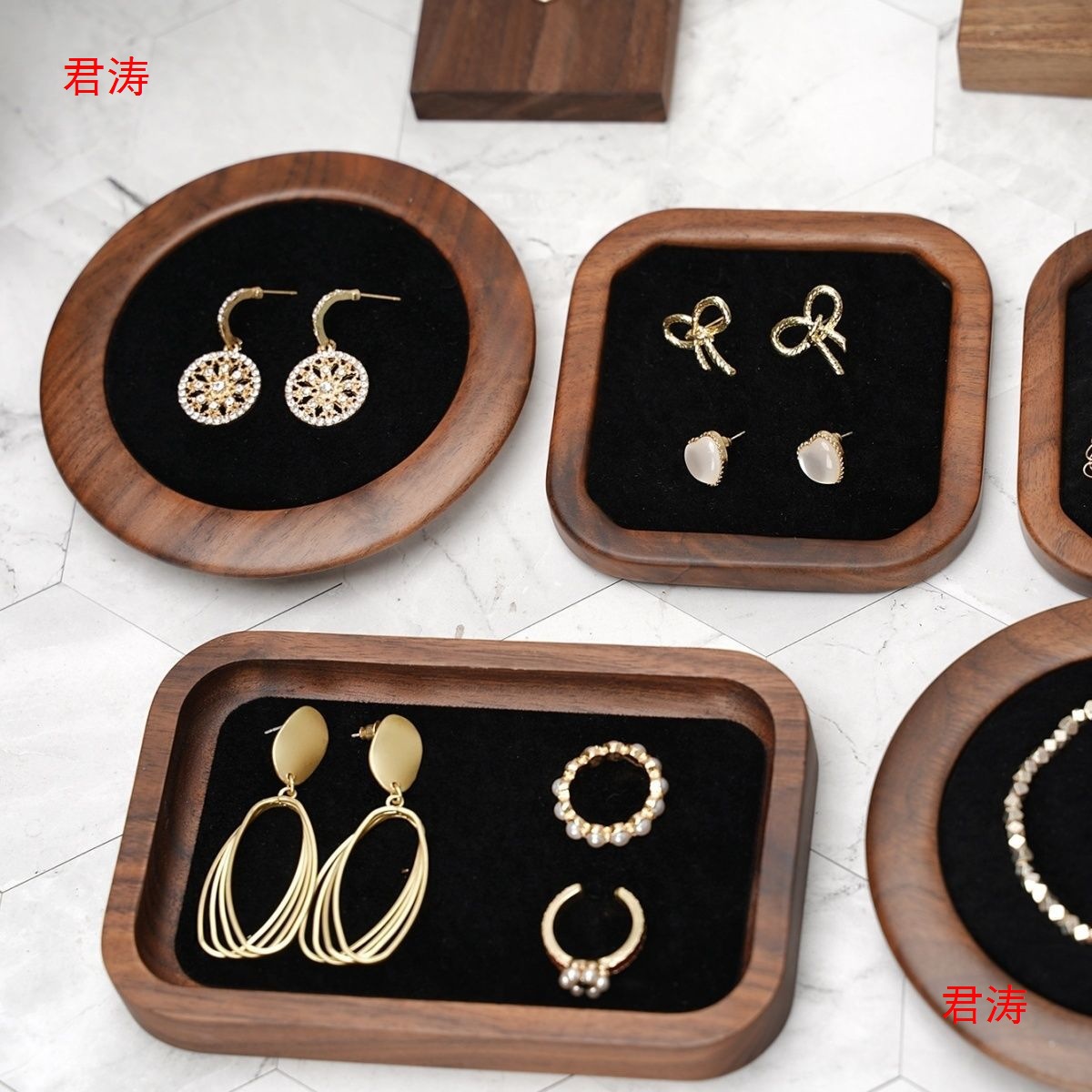 Photographing jewelry display plate props earrings earrings ring display necklace jewelry tray black walnut jewelry