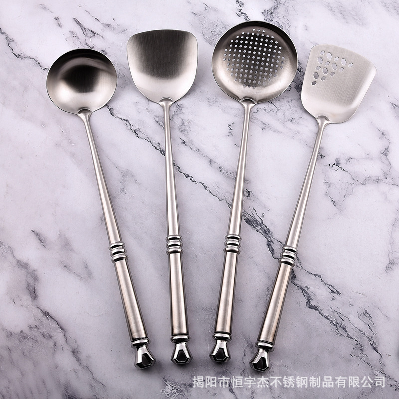 304 stainless steel new kitchen utensils spatula spoon suit extended diamond handle home kitchen cooking spatula spoon big leak