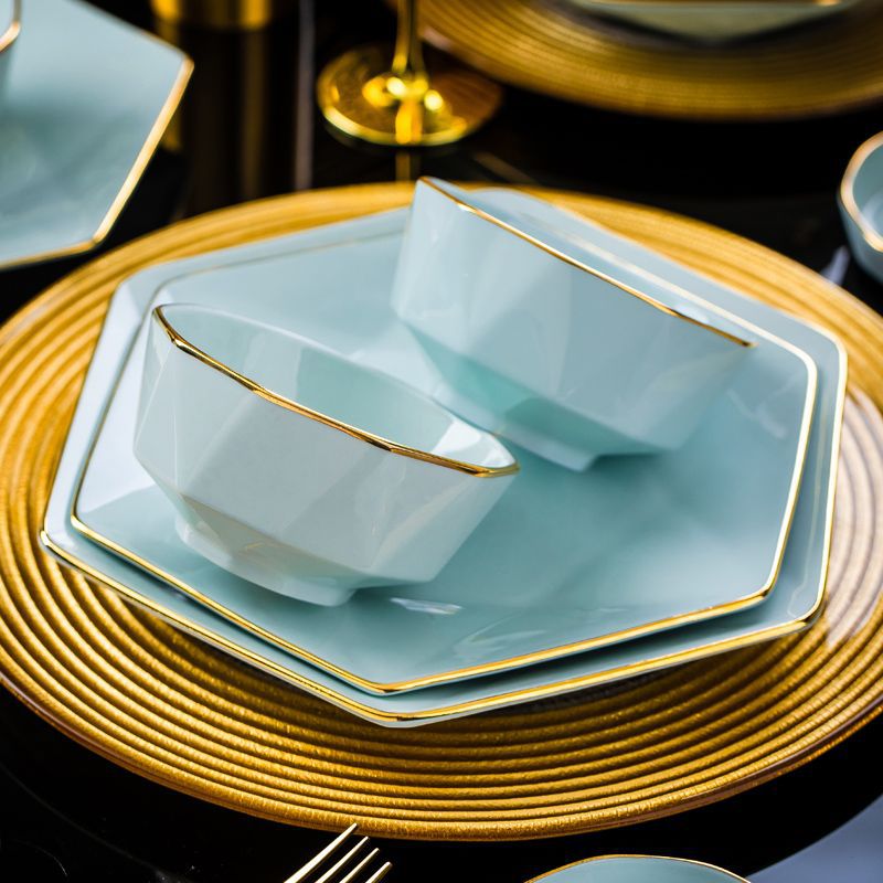 Tableware Bowl Plate Set Nordic Phnom Penh Diamond Bowl Soup Bowl Plate Dish Plate Household Ceramic Tableware Bowl Chopsticks Wholesale