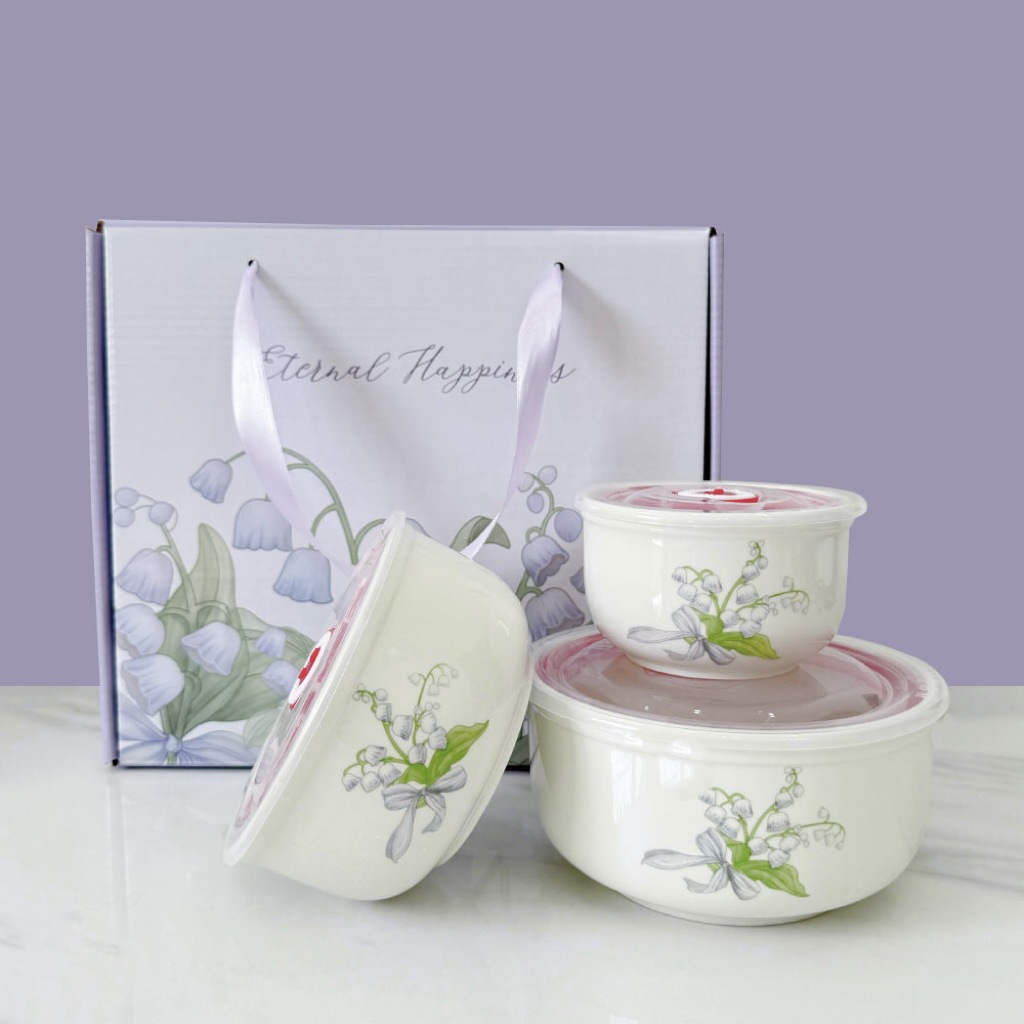 Suzuki orchid ceramic fresh-keeping bowl rice bowl three-piece gift box company promotional jewelry store gift opening gift