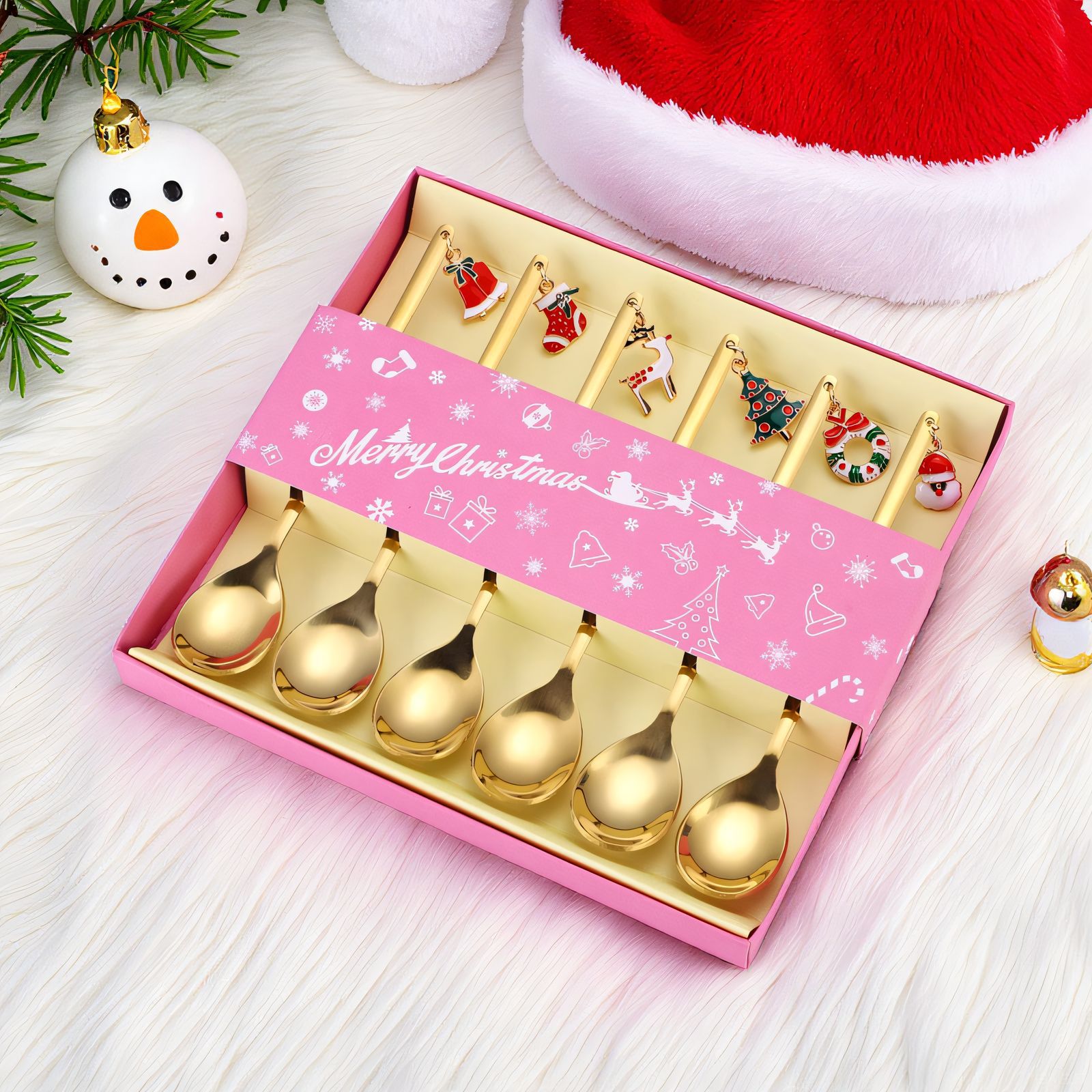 Cross-border Christmas gift suit stainless steel coffee spoon high-value Christmas pendant dessert spoon Christmas companion gift