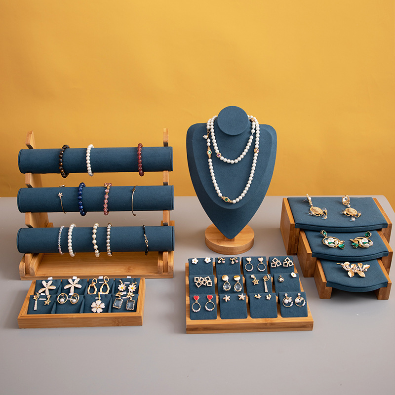 Customized Market Jewelry Display Stand Set Bamboo Jewelry Tray Necklace Pleural Display Stand Stall Storage Viewing Pallet