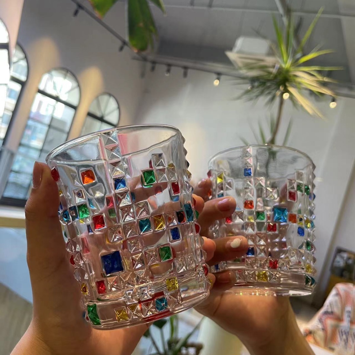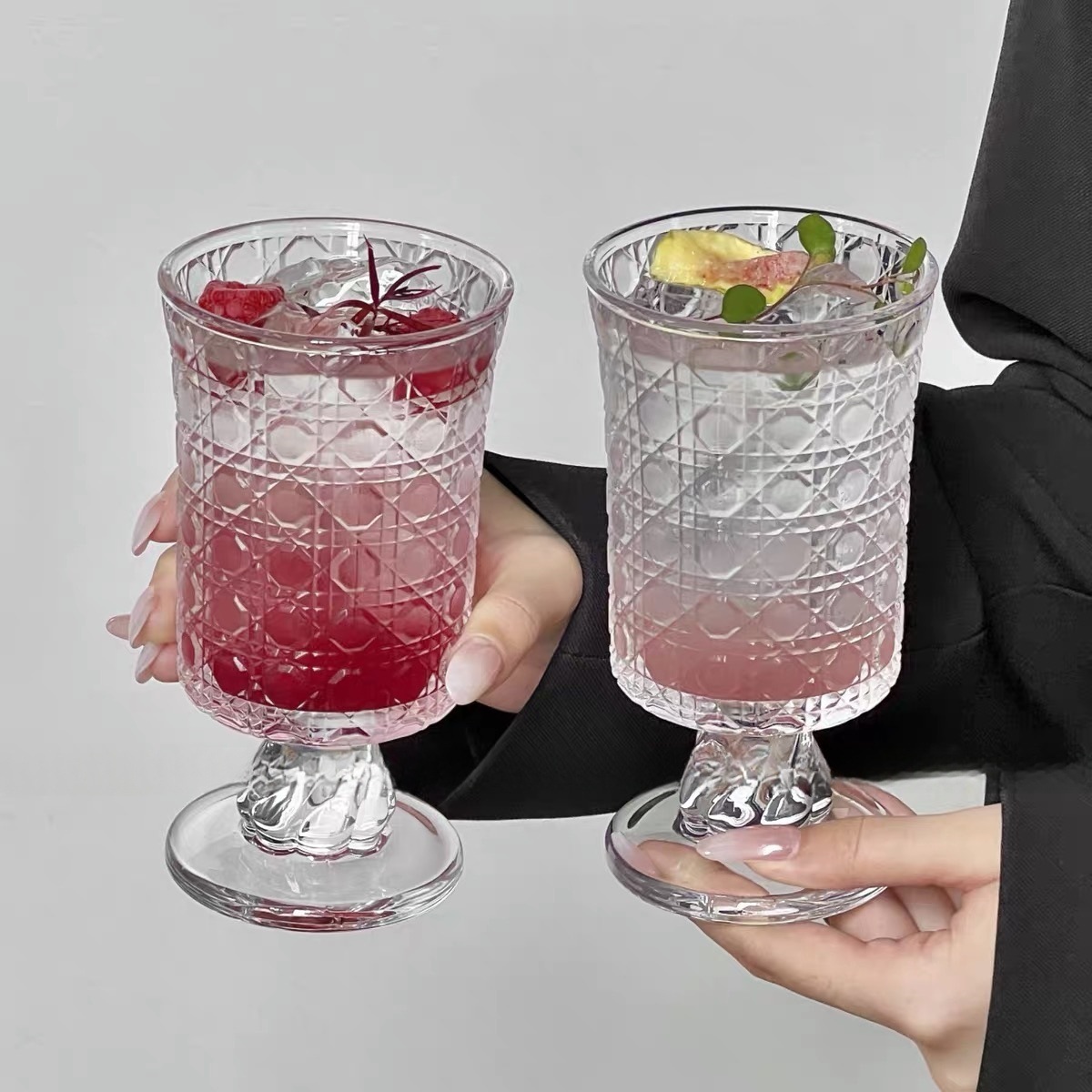 Tall Juice Glass for Home Use, High-Value Gemstone Pattern, Creative Transparent Fruit Tea Sparkling Water Cup, Cocktail Glass