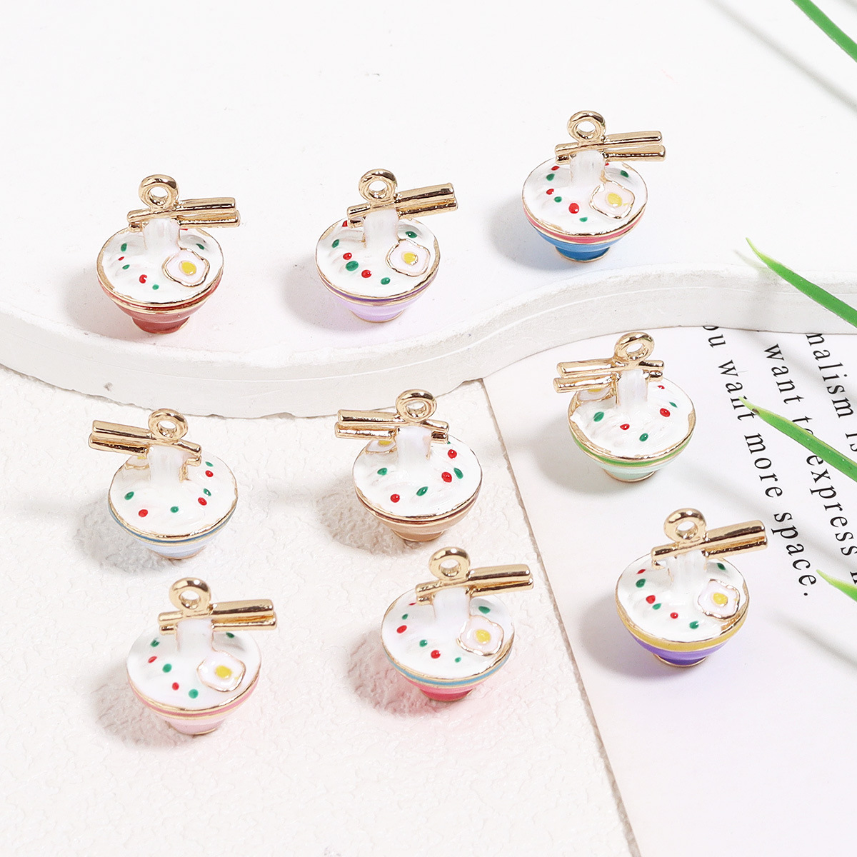 Alloy Oil-Dropping Three-Dimensional Simulated Egg Noodle Bowl Small Pendant DIY Jewelry Pendant Accessories Material