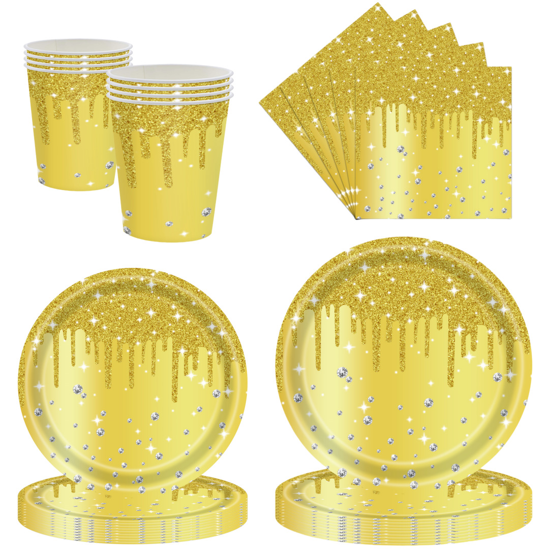 Gold Diamond Birthday Party Paper Plate Set Glitter Girl Wedding Disposable Dinner Plates Paper Cups Tissue Supplies
