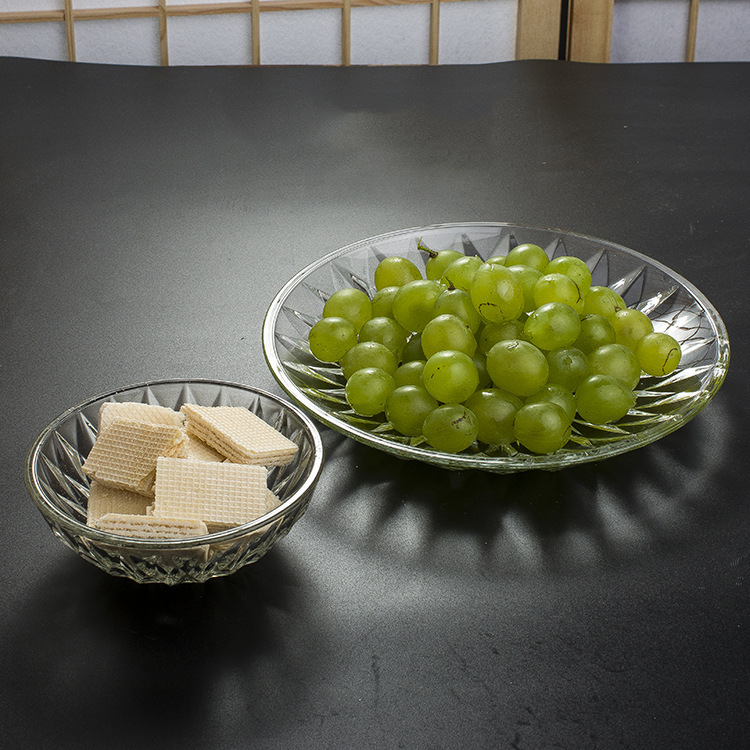 Ocean Diamond Lead-free Glass Bowl Dinner Plate Snack Dish Fruit Plate Snack Dried Fruit Dish Hotel Flat Light Round Basin