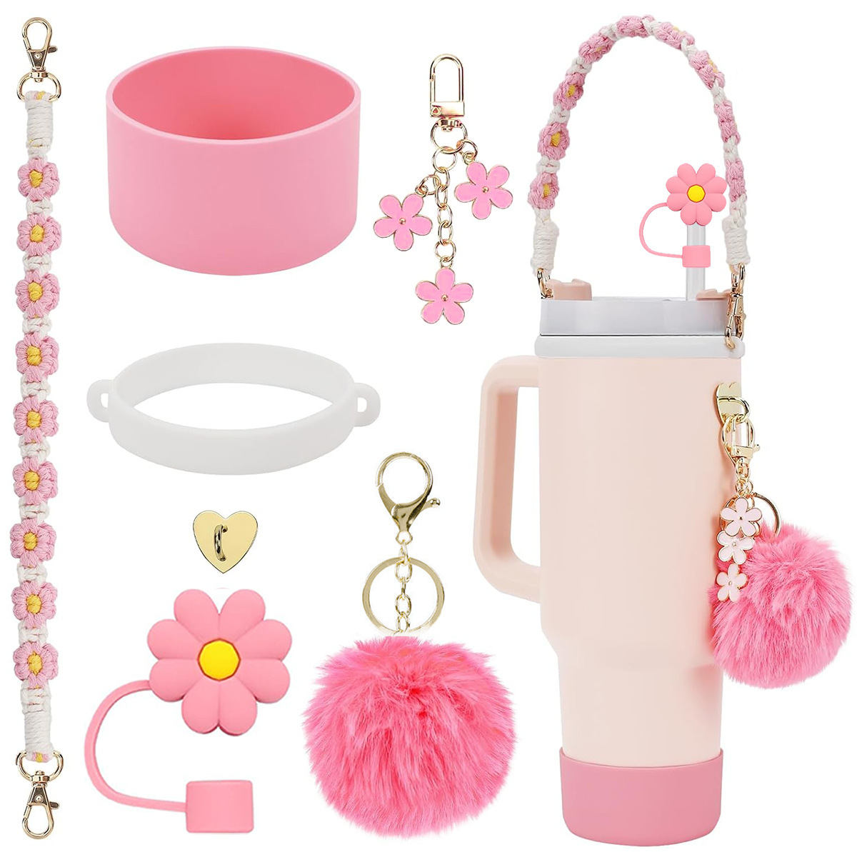 Stanley Cup Peripheral Set Decorative Straw Cap Cup Cover Cup Chain Flower Key Pendant Plush Ball Pendant